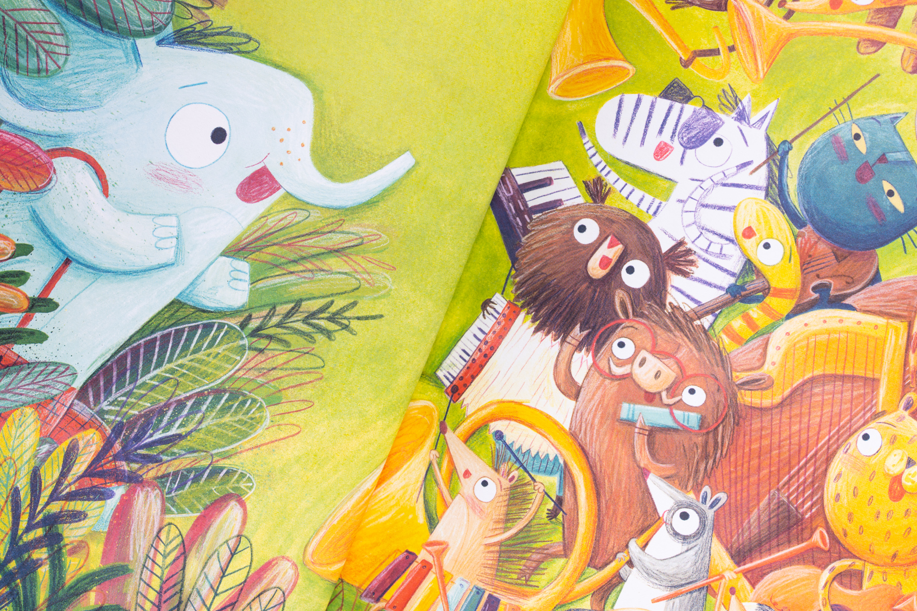 Всички животни в джунглата обичали музиката и можели да свирят на някакъв музикален инструмент. Слончето се опитвало и се стараело да се научи, но винаги проваляло всичко. Ето защо на Хектор му било позволено само да слуша.